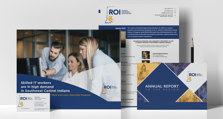 When I joined the ROI team, this new organization had a logo, but no supporting brand materials. I extended the initial brand identity through a comprehensive stationery package and marketing materials.